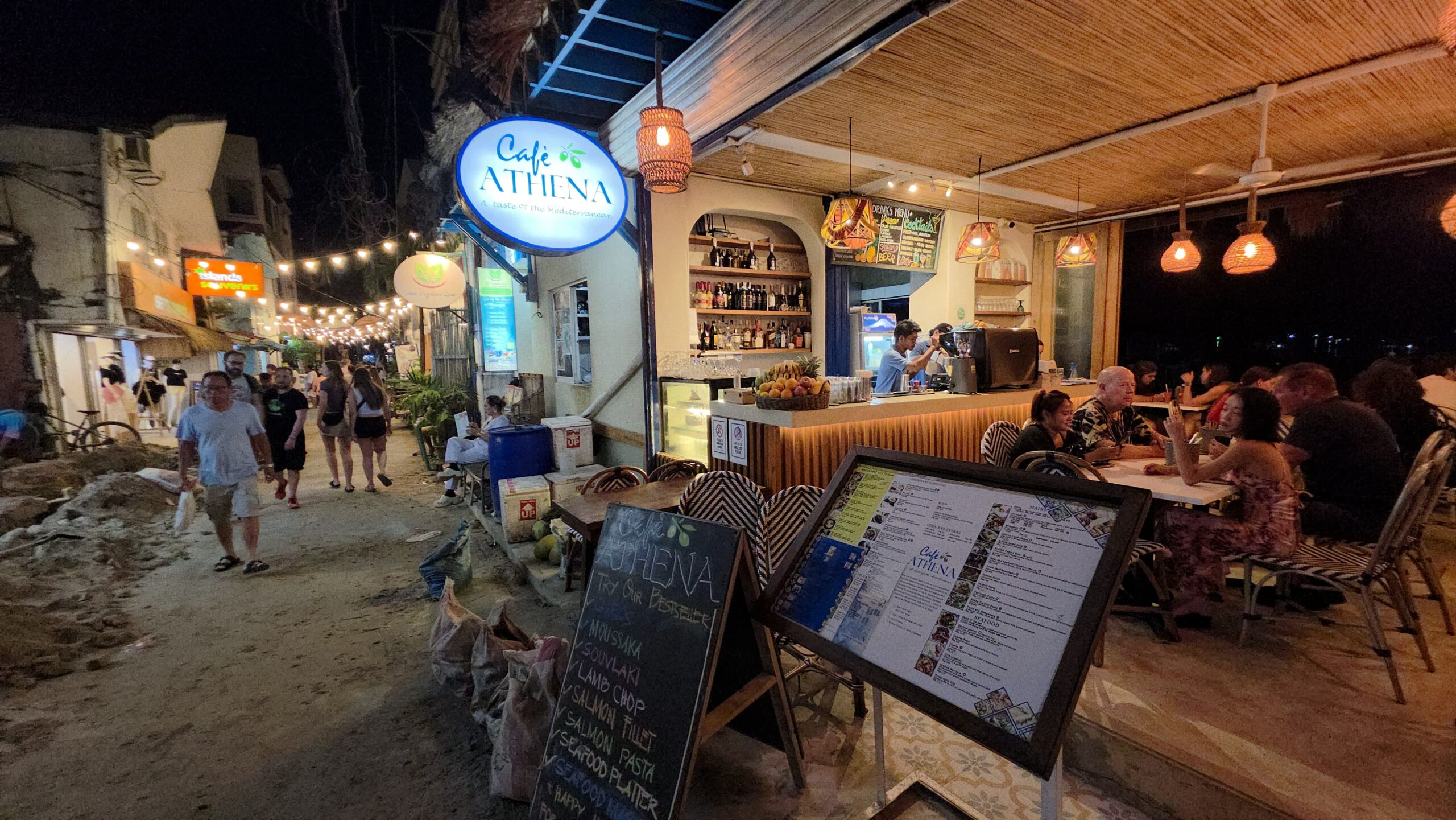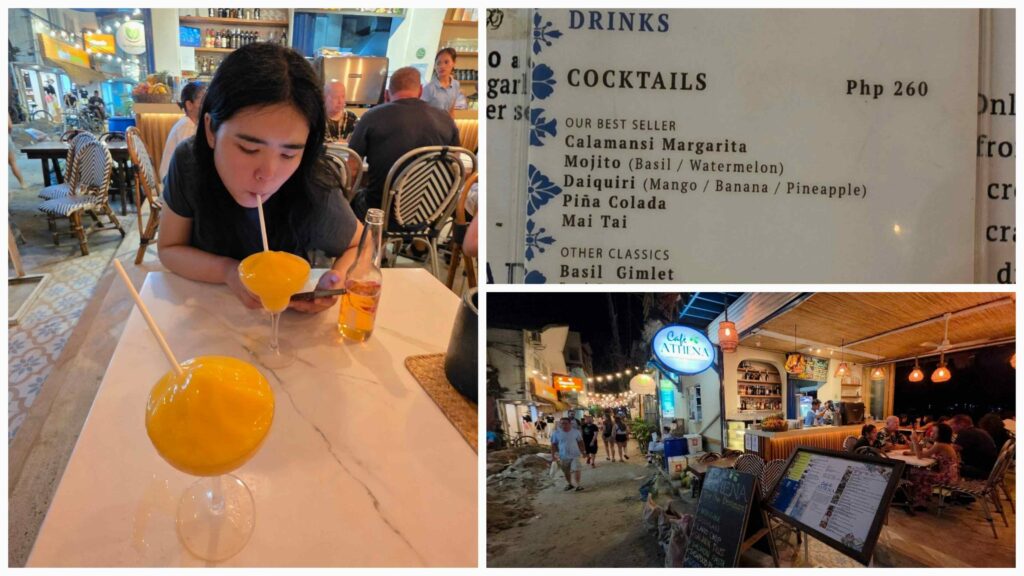 這家應該不算酒吧,定位算是希臘料理餐廳,但因為他們幾乎整晚都Happy hour,所以我們在其他地方吃完飯又過去喝了幾杯。他們Happy hour的價格比The Treehouse還便宜,最低較然才260php買一送一,是我在這裡看了十幾家之中最便宜的。我們點了Mango Daiqiori,芒果味很濃,蘭姆酒的比例我覺得剛剛好,如果我們不是因為已經喝了太多芒果怕芒果中毒應該會多點幾杯吧。另外我們還點了蘋果風味啤酒,但這我覺得還好而且不太划算,我就不多講了。