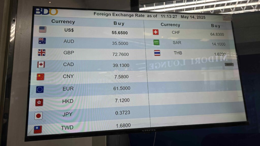 ▲這是克拉克機場當天最好的匯率了,另外兩家都低了一點,最低1美金可換55披索
